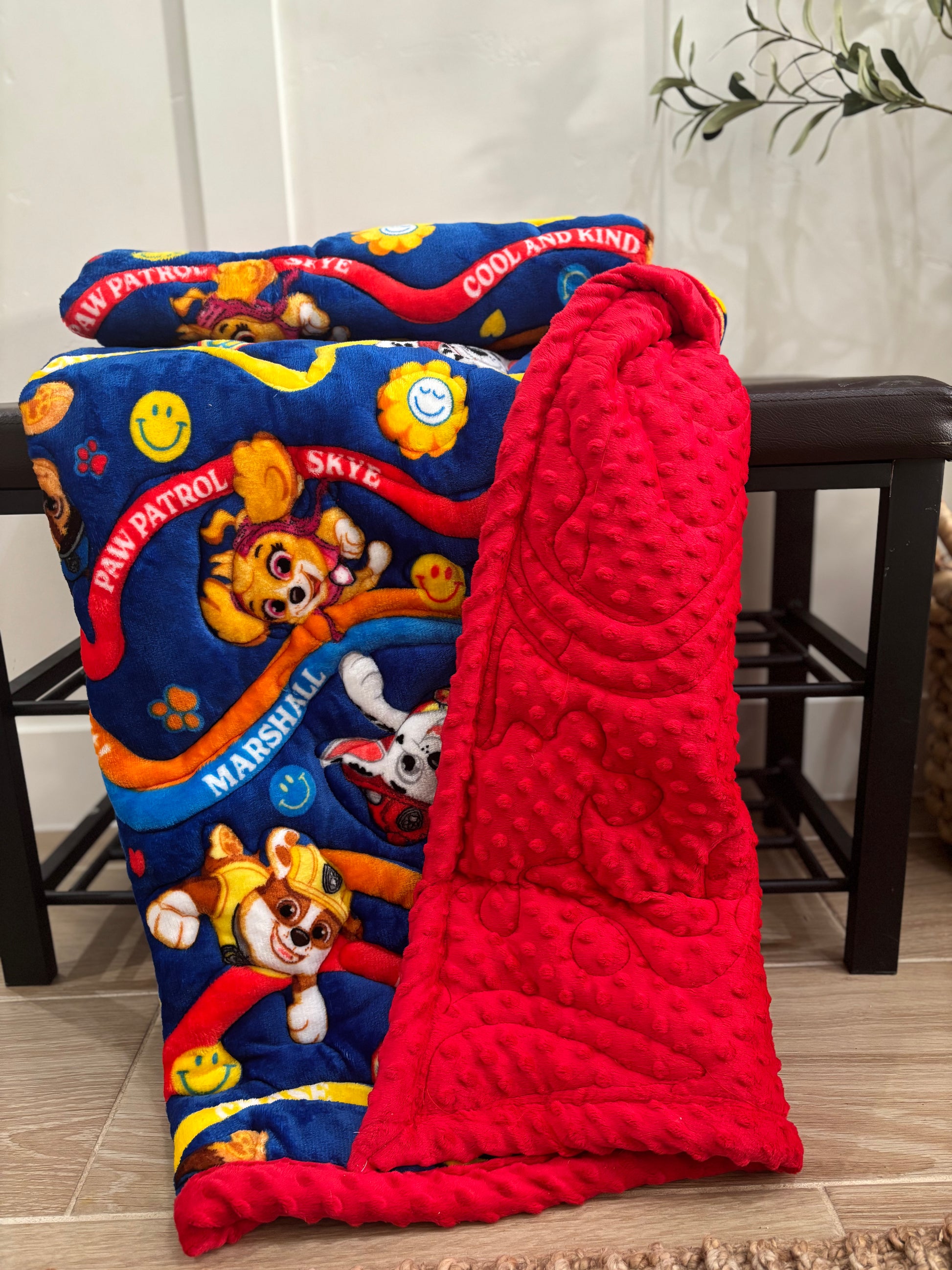 Snuggle up with our Paw Patrol Handmade Minky Blanket! Lovingly handcrafted with ultra-soft minky on one side and a playful Paw Patrol print on the other, this blanket is perfect for little adventurers. Cozy, lightweight, and ready for every rescue missionโperfect for naps, playtime, and bedtime.