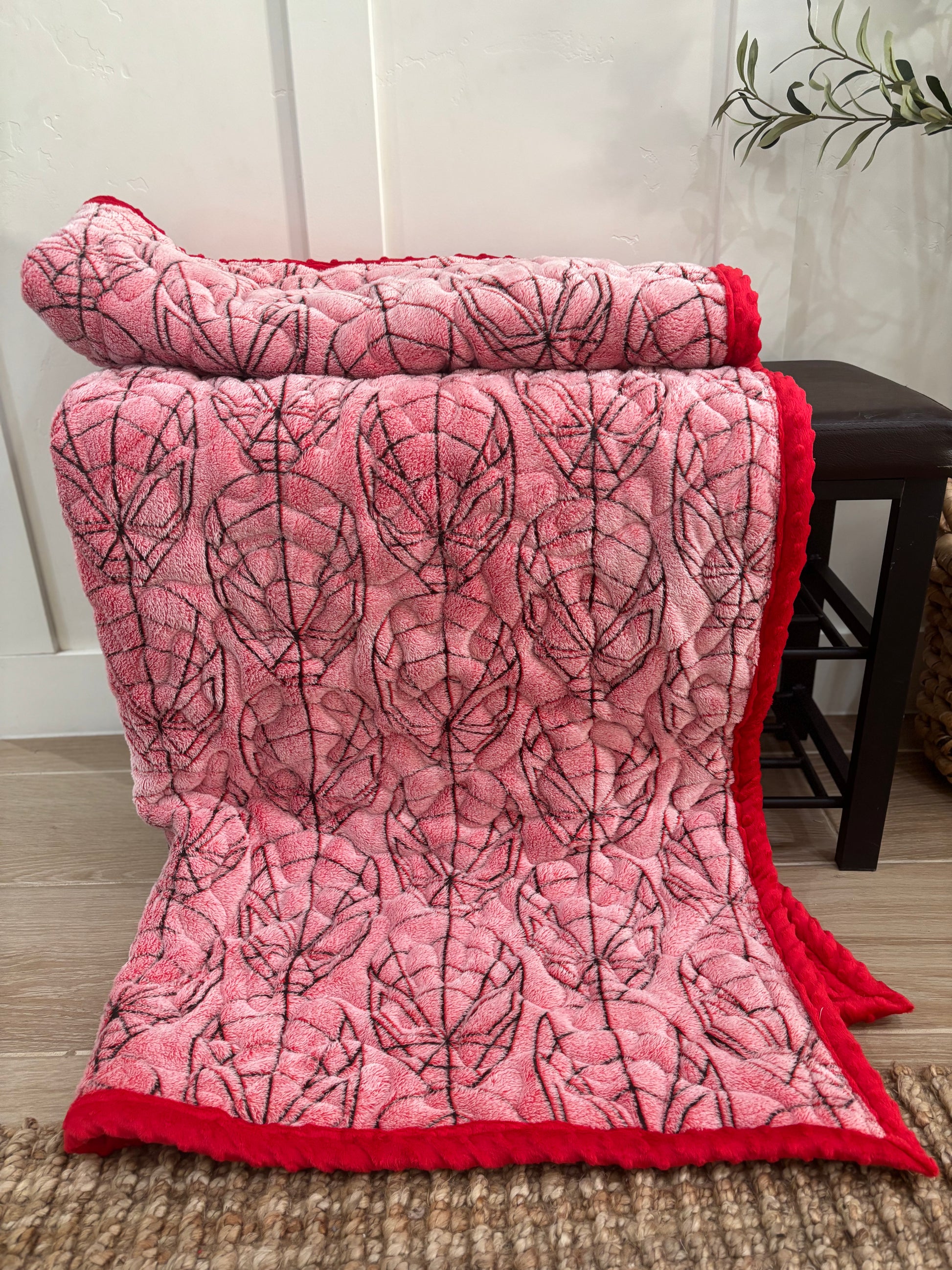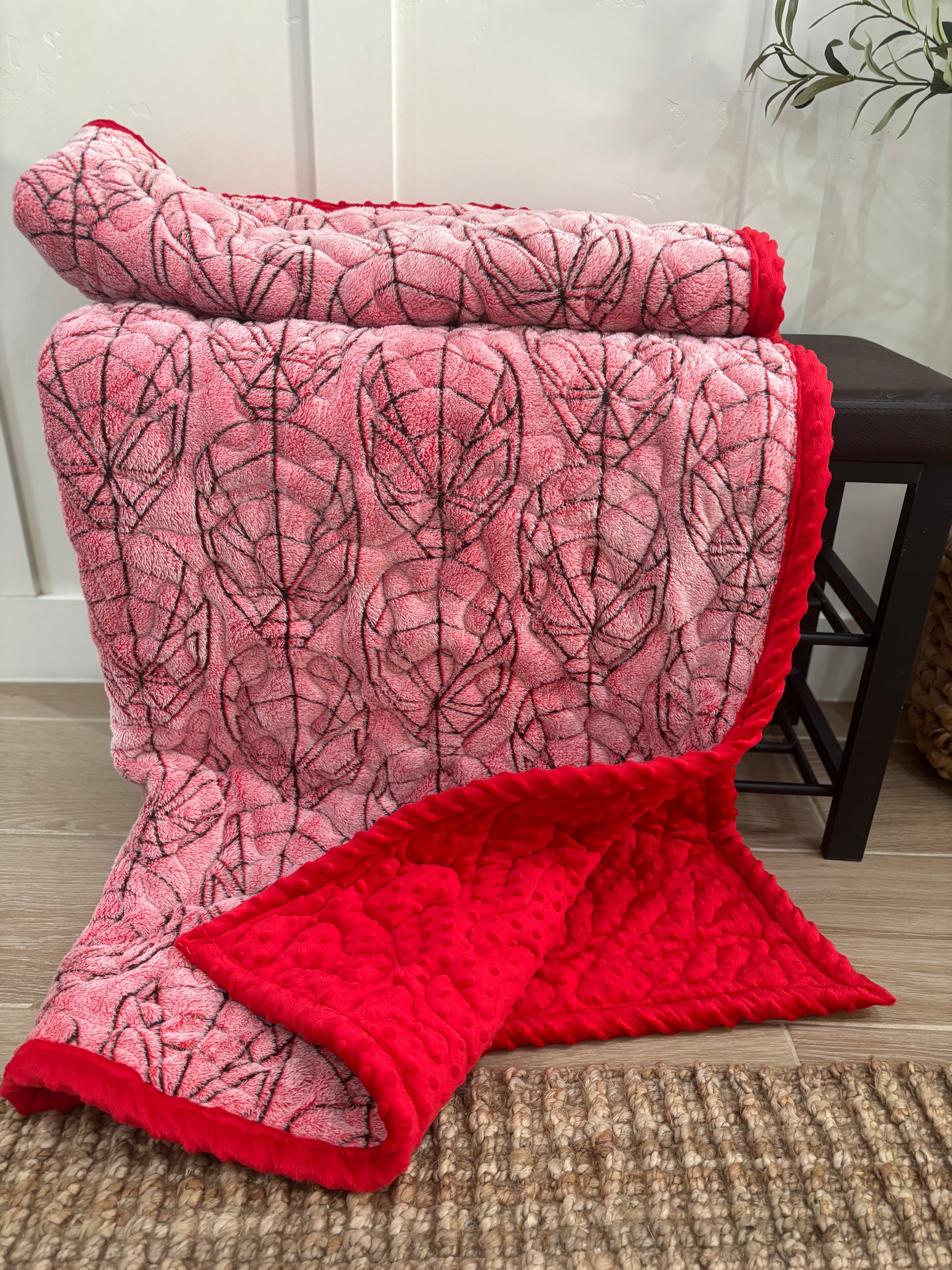 Swing into snuggle time with our Spider-Man Handmade Minky Blanket! Carefully handcrafted with ultra-soft minky on one side and a vibrant Spider-Man print on the other, this blanket is perfect for little heroes who love adventure. Cozy, lightweight, and ready for action—ideal for playtime, naps, and bedtime.